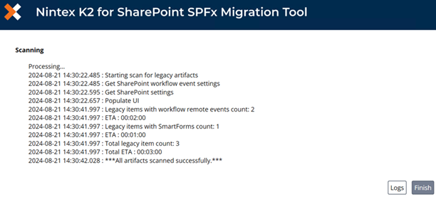If you have existing SharePoint Online solutions using the legacy Nintex K2 Cloud for SharePoint app, you must move your existing solutions to Nintex K2 Cloud (SPFx) app before the deadline provided by Microsoft. From Nintex K2 Cloud Update 21 onwards, you can use the Nintex K2 Cloud SPFx Migration Tool to do this. The migration tool connects to the K2 database, create an inventory of Add-In based artifacts and perform the changes for you.