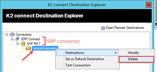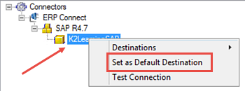 - Right-click K2LearningSAP and select Set as Default Destination.