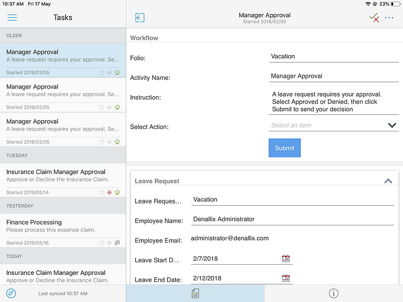 You can use the K2 Workspace app for mobile devices to work with K2 workflow tasks, open application forms, or share and redirect tasks to other users. For more information about the K2 Workspace app for mobile devices, see the K2 Workspace (Mobile) apps user guide.
