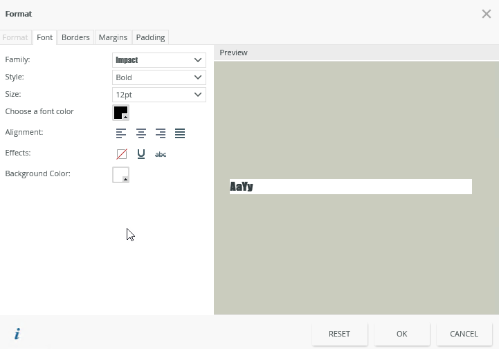 - Configure the style of the text using the Font tab.
