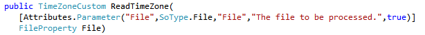 To define static parameters for the method, decorate it similar to the following example, which adds the File parameter.