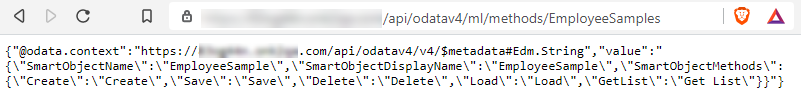 To get a list of the SmartObject methods, use the /ml/methods/ endpoint and specify the name of the EntitySet: