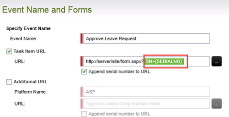 The serial number for a task is normally appended to the Client Event URL as a query string parameter. When using the Client Event wizard in a workflow, you should see where K2 appends the serial number (SERIALNO) for the task to the Web Page URL: