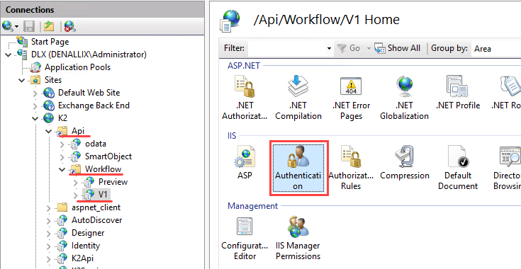 - Open IIS and browse to the API (K2 > API > Workflow > v1)