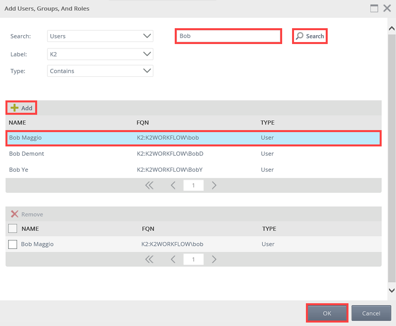 - On the Add Users, Groups, And Roles page search and add a user, group or role. Click OK.