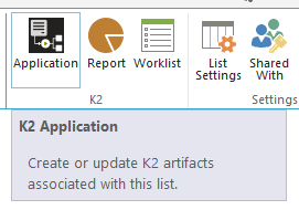 - Select the K2 Application icon from the SharePoint List or Library ribbon.