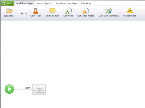 - The workflow design canvas will now open. On the design canvas, start building your workflow by adding Workflow Steps.