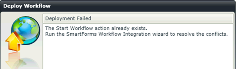 This happens when a workflow has been deployed, the Form is subsequently changed and trying to deploy the workflow again.