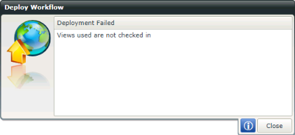 The deployment will fail if Forms and/or Views are not checked in. Click Close to exit the wizard, check in the Forms or Views and Deploy again.