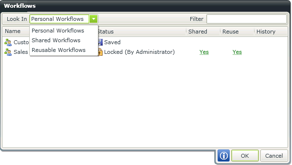 Open an Existing Workflow > Personal Workflows