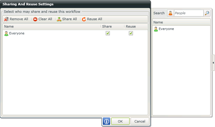 K2 Workflow Designer workflows are designed to be shared and re-used, saving development and implementation time. The ability to manage who accesses certain workflows can be controlled by creating a level of security for K2 Workflow Designer workflows.