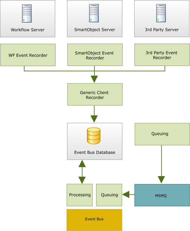 In K2 blackpearl version 4.6.9, a number of configuration files have been consolidated into a single configuration file to simplify the management of configuration settings. The SourceCode.Eventbus.Server.config have been consolidated into the K2HostServer.exe.Config file, which is located in the \K2 blackpearl\Host Server\Bin folder on the K2 Server.The connection strings previously stored in these files are now retrieved from the K2HostServer.exe.Config file.