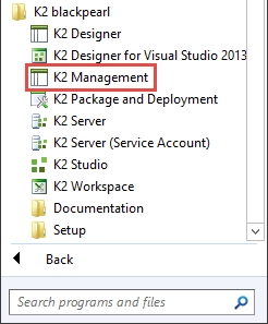 Launch the K2 Management site (Start > All Programs > K2 blackpearl > K2 Management).
