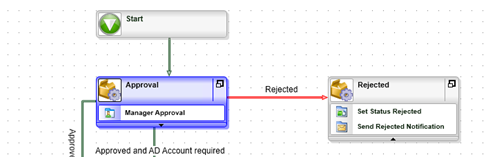 - You can also use color-coding to illustrate the different paths that may be followed (for example, to illustrate the exception path of a workflow). Right-click the Rejected line and change its color to red to indicate that this is the exception path.
