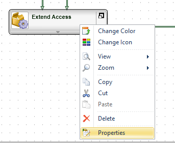 - Right-click the Extend Access activity and select Properties.