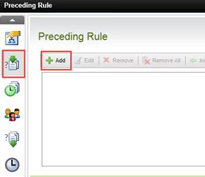 - Select the Preceding Rule tab, then click Add.