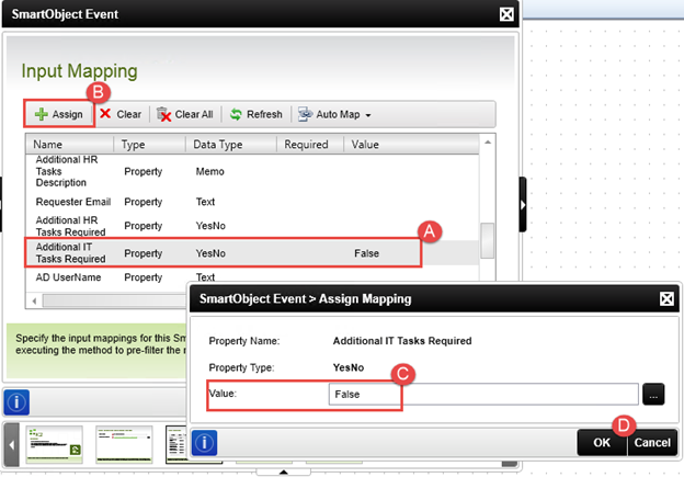 - Run the wizard for the copied Set HR Tasks Complete event, and set the value of the Additional HR Tasks Required property to