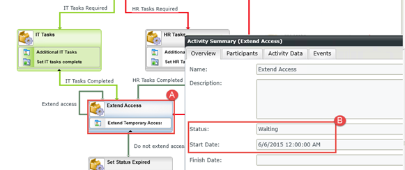 - If you refresh you task list, you should not see any Extend Access tasks because the remaining tasks are delayed until one day before the end date. For example, Second Test does not show up in the requester’s task list yet, because you delayed this task to start one day before the temporary access is due to expire. In fact, if you open the View Flow Report for the Second Test and then double-click the Extend Access step, you should see that the status is waiting and the start date is a date in the future.