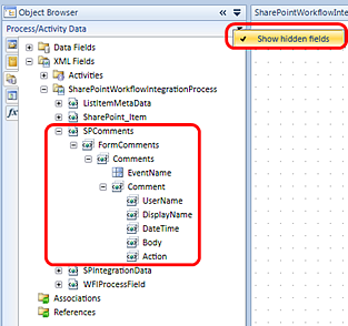 When you use the SharePoint Workflow Integration wizard to expose a K2 workflow as a SharePoint workflow, K2 will create four XML datafields in the process automatically. For examples of these schemas, download and extract the following file: K2Documentation.Samples.Reference.SPWorkflowIntegration.zip.