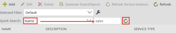 - Next, you will navigate to the new service instance. Scroll through the service instances or use the Quick Search option to locate the Sales Customers service instance.