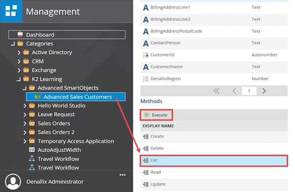 You will now navigate to the Advanced Sales Customers SmartObject located in the K2 Learning > Advanced SmartObjects category.