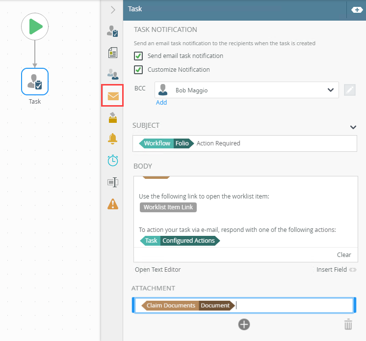 - Select the Task step and click the Task Notification tab.