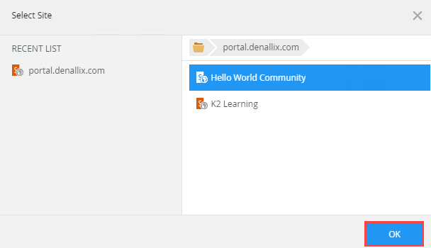 - Select a site and click OK.