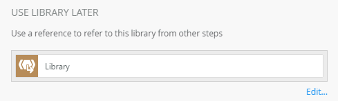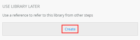 | Use Library Later | Use this to create a reference to use from other steps within the workflow. | Click the Create link to create a reference. Click the Edit link to edit the reference name. If you edited the reference name and want to reset it, click the Reset Name link. |