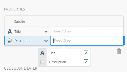 - To delete properties, select them and click the Trash bin.