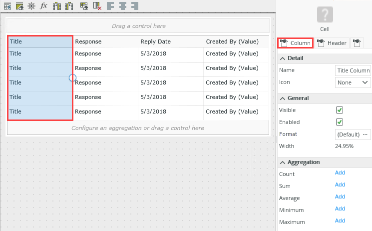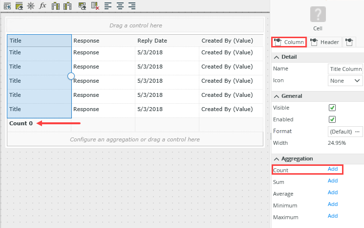 - You also want to show a count of the Hello World list items. Select the Title column, then click the Column tab in the Properties pane.