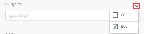 - Click the send email type menu icon to select and add Cc or Bcc recipients to the email.