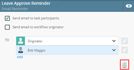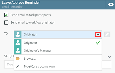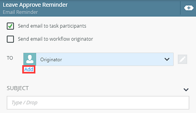 | Send email to workflow originator | Use this to send the reminder email to the workflow originator. |