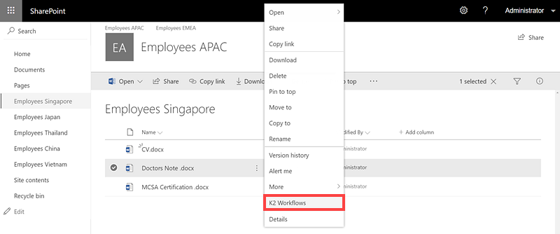 Click the ellipses ( ...) icon for the Item to open the context menu and then select workflows. The Start Workflow page opens.
