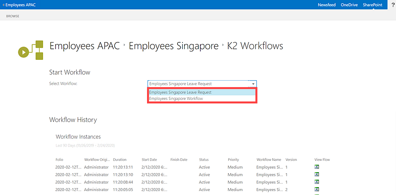 You can use the Start Workflow option to view workflow history, and determine which workflows have started for a specific document library item or list item. You can view the workflow's instances, activity instances, task users, and view flow of the document library item or list item.