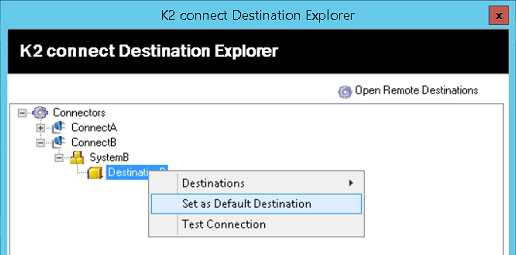 - To set the Destination as the default, right click the Destination and select Set as Default Destination.