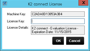 A new license key can be requested from http://portal.k2workflow.com. You must provide your machine key.