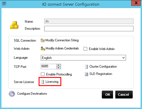 The K2 connect Server Configuration screen will open. Click on Licensing.