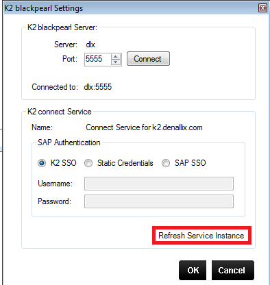 * As K2 connect service instance refers to the same Service Object Repository, it is recommended to provide an identifiable Service Object name when creating new service object. For example: a prefix naming convention – [SAPInstanceName]-[ServiceObjectName]