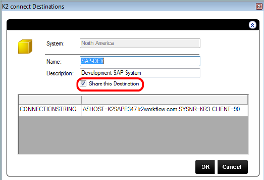 Type a name for the Destination and enter the SAP connection string. It should be in the following format: