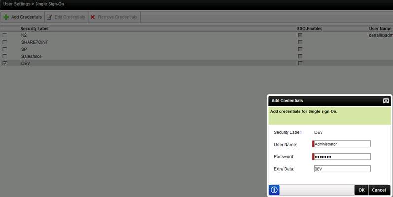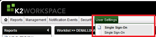 The secondary set of user credentials are cached against a security label. The various security labels, including the security label are available from within K2 Workspace > User Settings > Single Sign On.