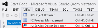 - Open K2 Designer for Visual Studio and click View > K2 Service Object Designer.
