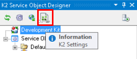 - From the K2 Service Object Designer, click on the K2 Settings icon.