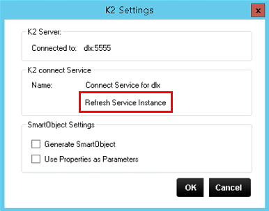 Follow these steps to refresh the K2 connect Service instance from K2 Designer for Visual Studio: