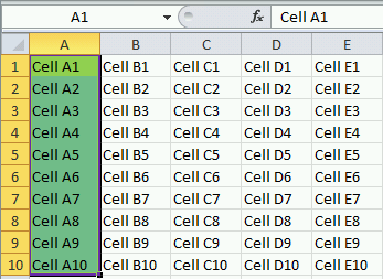 In this example, the returned output range is A1:A10.