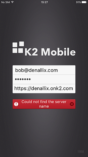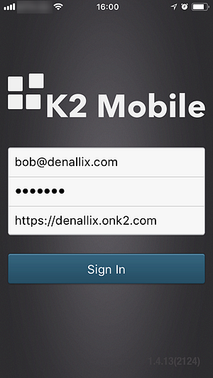 When connecting to a K2 Cloud environment, you must enter your user name (usually in email format) and the K2 Cloud server URL.