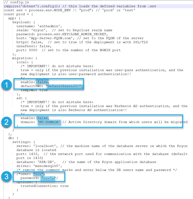 false= to not migrate users from Admin TooldefaultPWD: default is