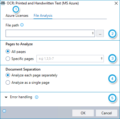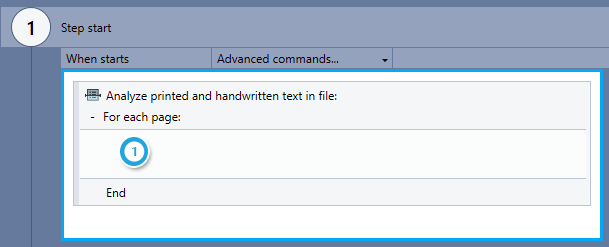 The first step in using the OCR: PRINTED AND HANDWRITTEN TEXT command is to analyze and separate the file on which the specified actions will be performed.