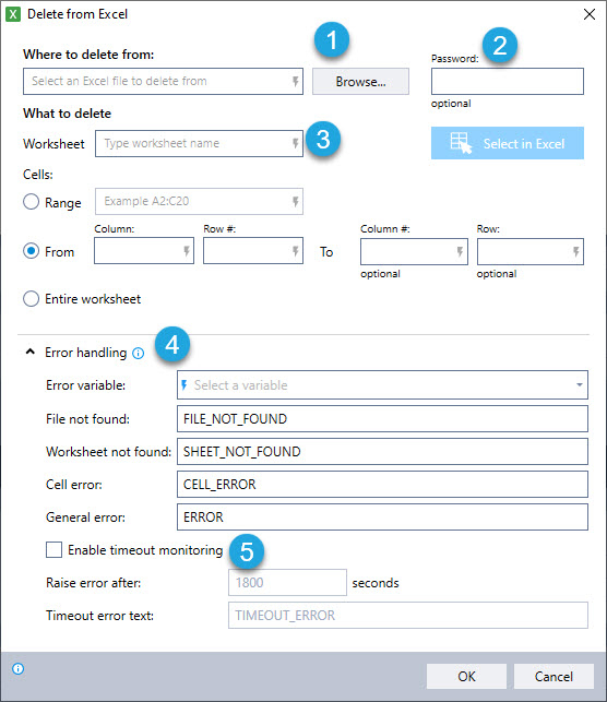 Entire worksheet – The robot will delete data from the whole worksheet.