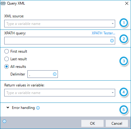 Try it out: To test your Xpath query while developing your wizard, simply click the XPATH TESTER link from within QUERY xml command.