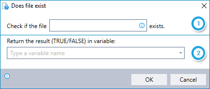 Check to see if a file exists and place the result of the check (TRUE/FALSE) into a variable.